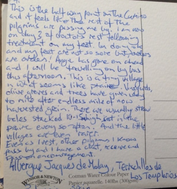 18 September 2018 – I sat at an albergue after everyone else had left as I waited in the daily bus.
