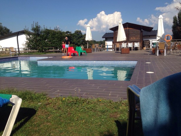 The advertising along the route plays to the needs of the pilgrim too: the signs for physiotherapists, massage therapists, bag transport* and taxis as the ultimate temptation to give up. We all get tempted to turn back, to not go all the way, to stay where we are. It would be nice to stay by this pool, to swim in its waters and enjoy the sun. But we have five more days of walking to go before we reach Santiago de Compostella. We committed to do this and with God’s help we will complete it.