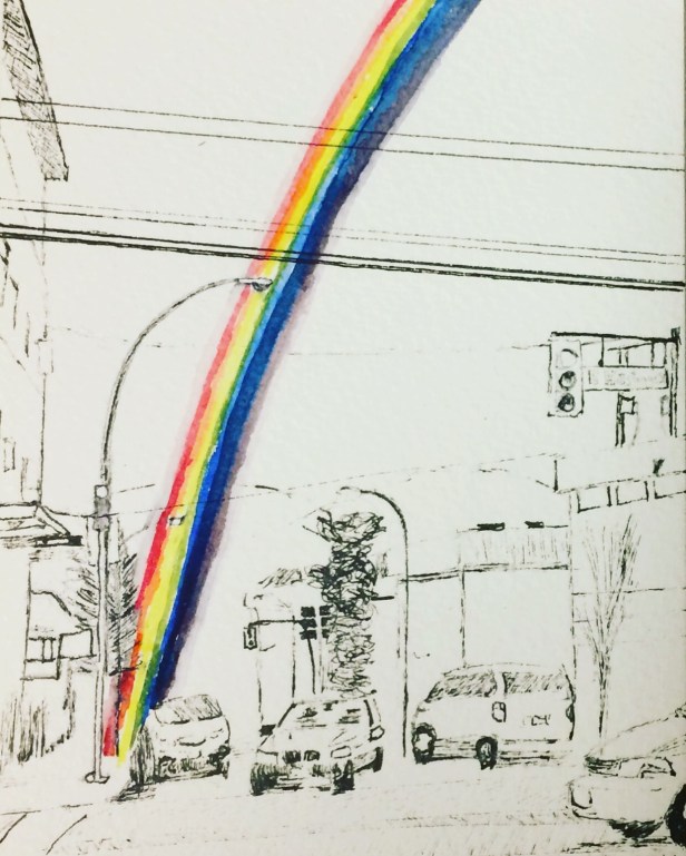 Looking up one day while walking this district in the rain I caught sight of a glorious rainbow. A prophetic statement of salvation in a needy land.