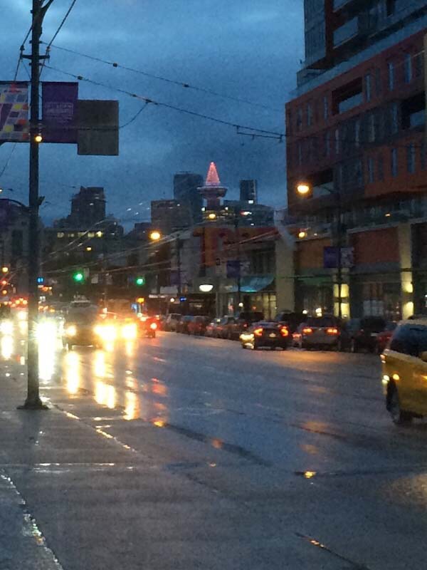 Later that night and ambulance, lights flashing, makes a u-turn on Hastings and stops by the sidewalk. The paramedics emerge and slowly don their plastic gloves, retrieve their kit bags from the side of the vehicle and approach a man lying flat on his back across two sidewalk shop blankets. They attempt to rouse him, shake his arms, he’s alive but requires Narcan. I did not wait to see if it spoilt his ‘high’.