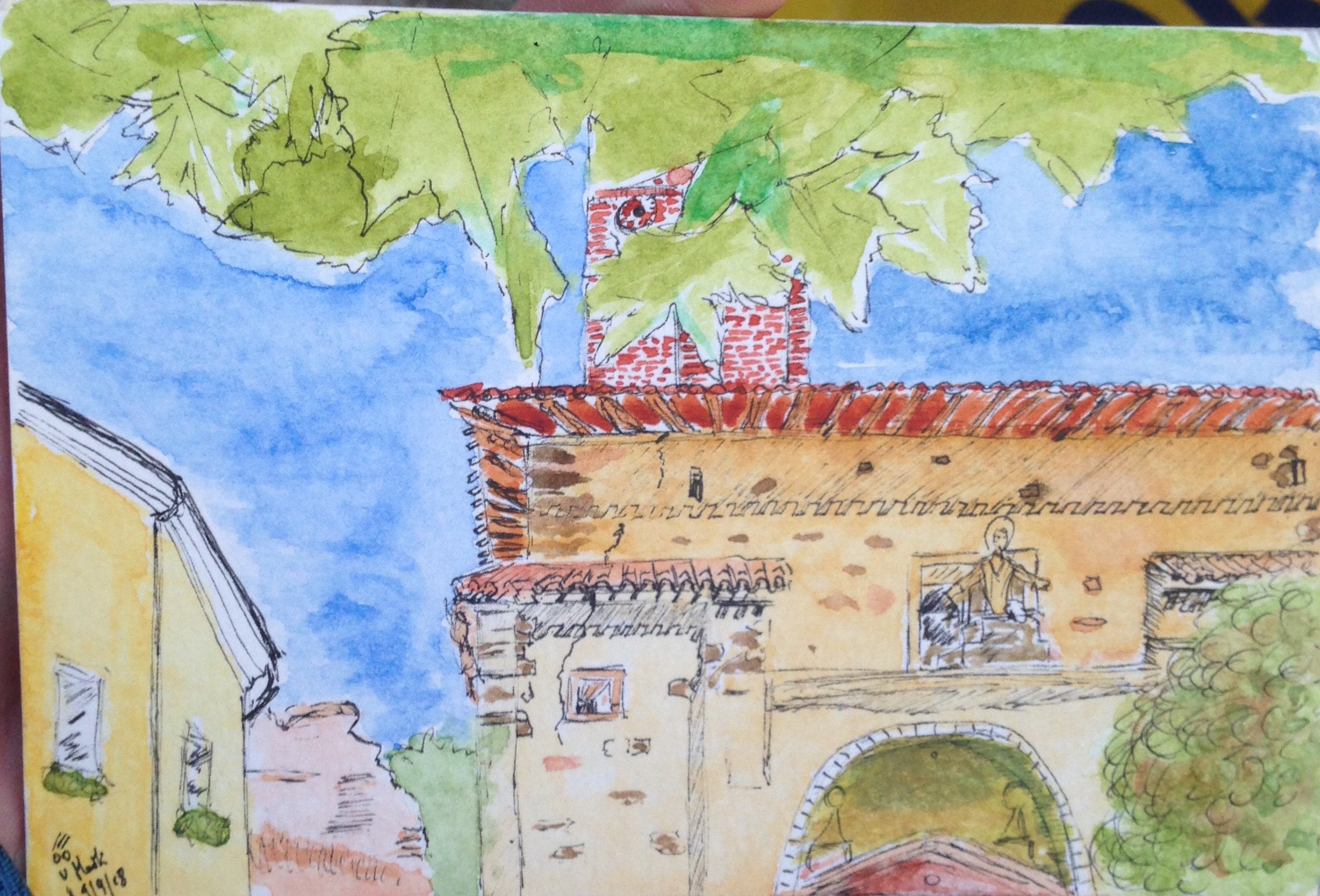 As we wander it has been a joy to sketch in pen and ink and then colour with a small set of travel watercolours.
